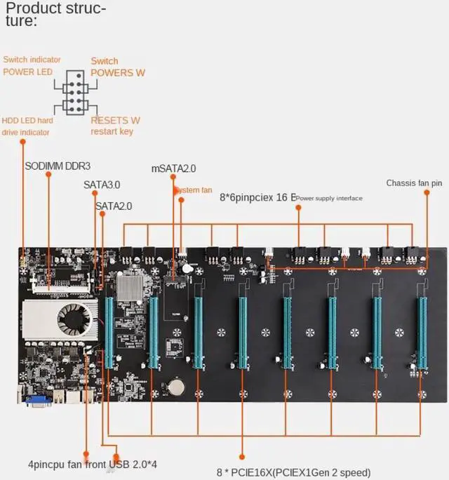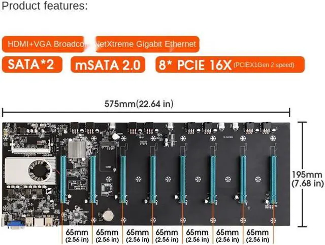 BTC-S37 Mining Machine Motherboard 8 PCIE 16X Graph Card SODIMM DDR3 SATA3.0 Support VGA + HDMI-Compatible
