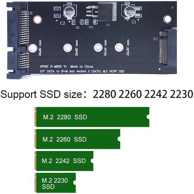 M.2 NGFF SSD to 2.5in SATA Adapter Converter supports SATA based B key and B+M Key M.2 SSDs.