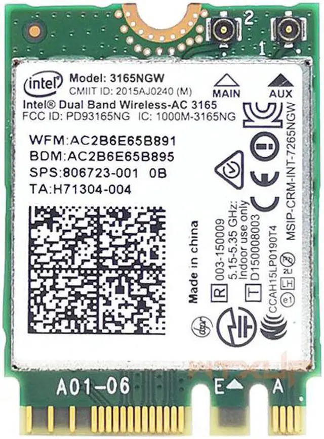 Intel Wireless-AC 3165 Wifi Bluetooth 4.0 802.11ac Card