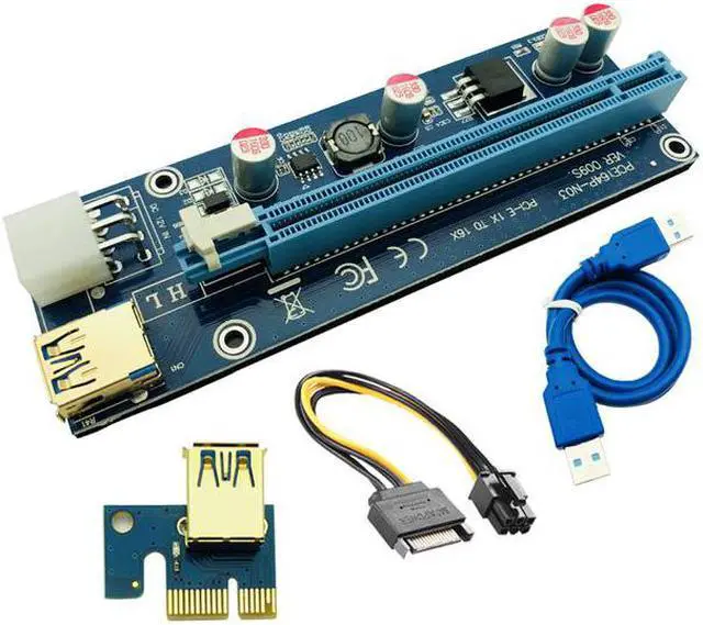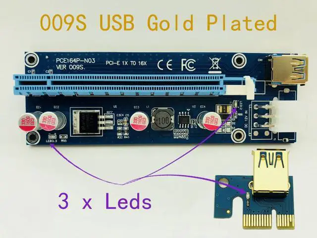 Riser 009S 3x LED PCI-E 1X to 16X Riser Card Extender Adapter SATA to 6Pin Power USB 3.0 Cable for Bitcoin Litecoin Miner Mining