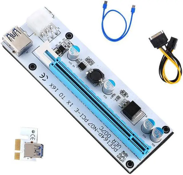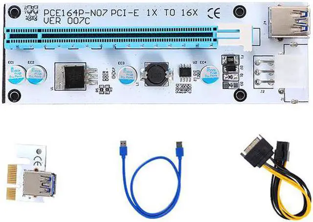 est Riser 007C PCI-E PCI Express 1x to 16x Mining Machine Extender Riser Card Adapter 15Pin to 6Pin Power Cable USB 3.0 Cable
