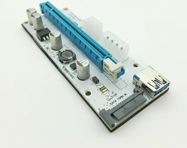 Riser VER008S 3 in 1 Molex 4Pin SATA 6PIN PCI-E PCI Express Riser Card 1x to 16x USB 3.0 Cable For Bitcoin Miner Antminer Mining