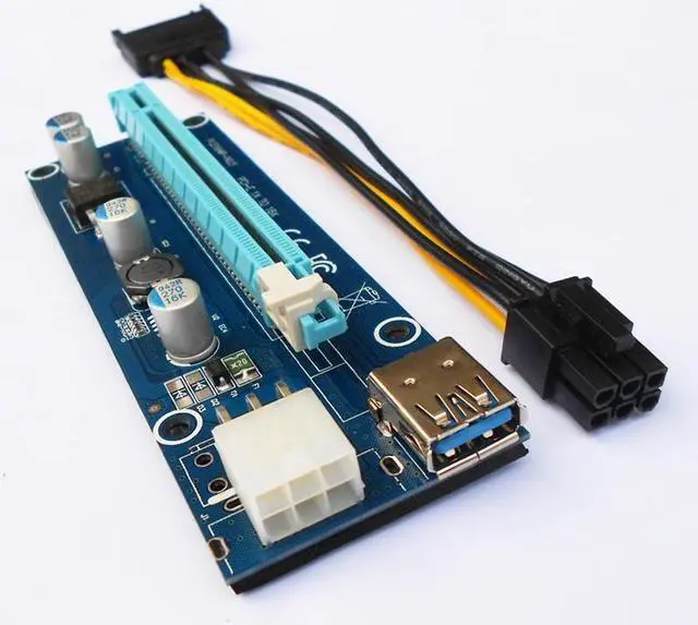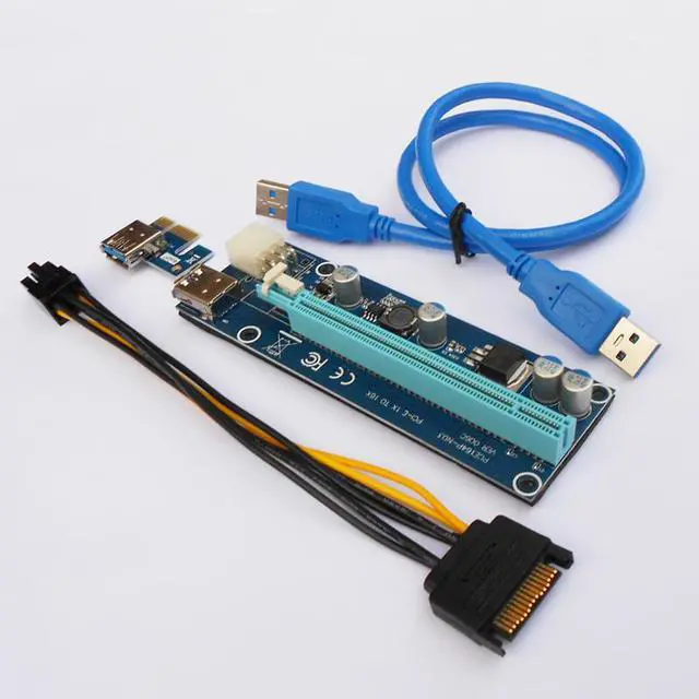 006C PC PCIe PCI-E Riser Card PCI Express 1x to 16x USB 3.0 Data Cable SATA to 6Pin IDE Molex Power Supply for BTC Miner Machine