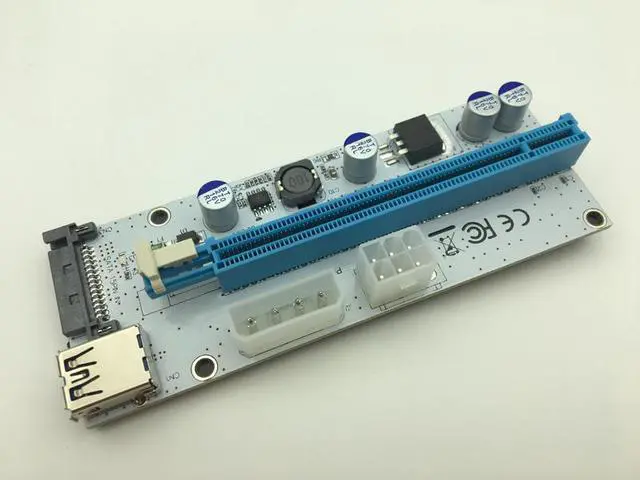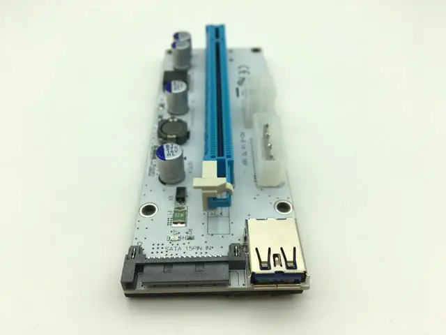 Riser Card VER008S 3 in 1 Molex Power 60CM LED PCI-E Riser Card 4pin 6pin Sata PCI-E 1x to 16x for Antminer Bitcoin Miner Mining