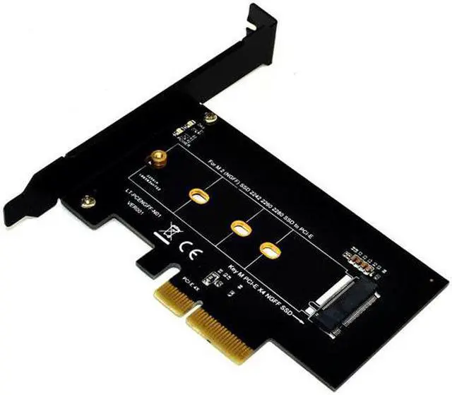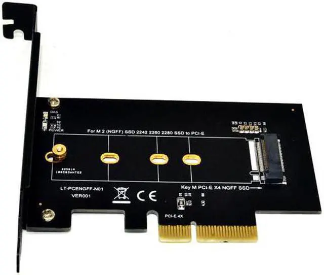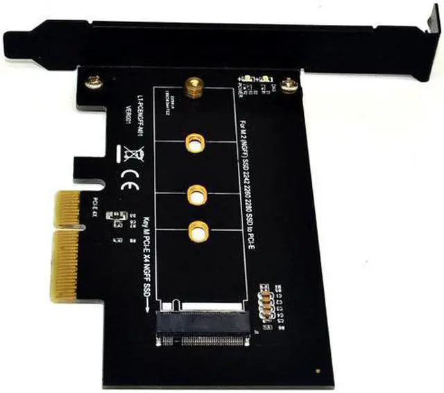 2.The general PCI-E X4 interface can be converted to M.2 NGFF interface. There are 4 fixed holes on the board, which are 22*32mm, 22*42mm, 22*60mm and 22*80mm respectively.