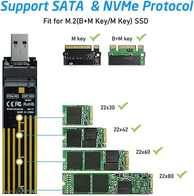 Applicable: for NVMe M.2 interface 2242/2260/2280 SSD/ or for SATA protocol m.2 SSD)