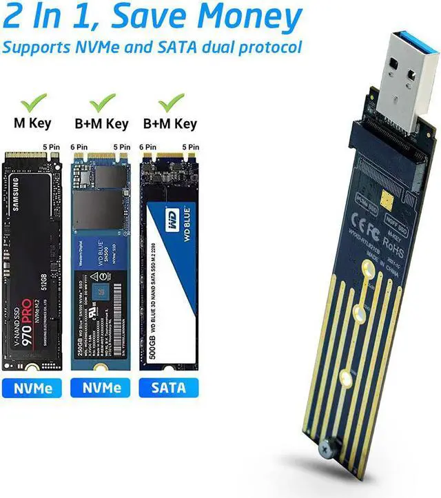 Hot swap, plug and play, no driver need. Fit for Samsung 970 series / 960 series / WD Black / Intel / Crucial NVME SSD.