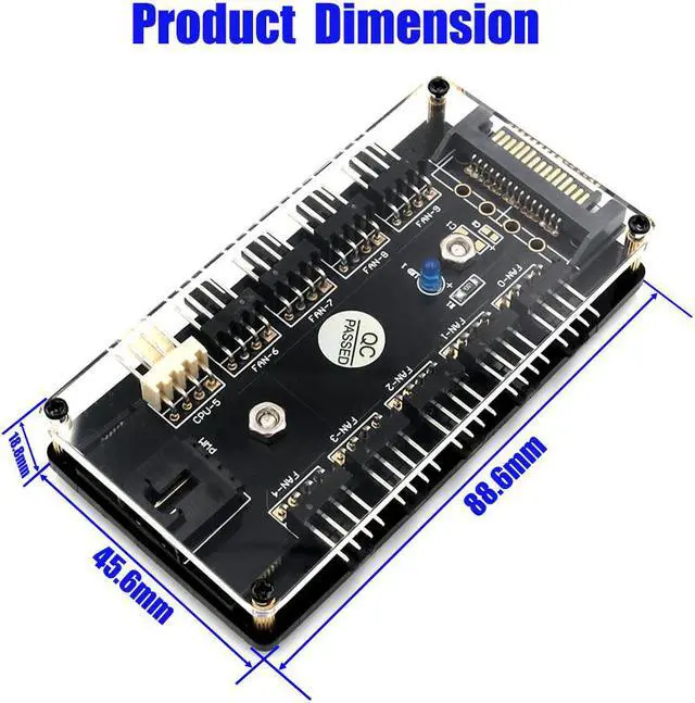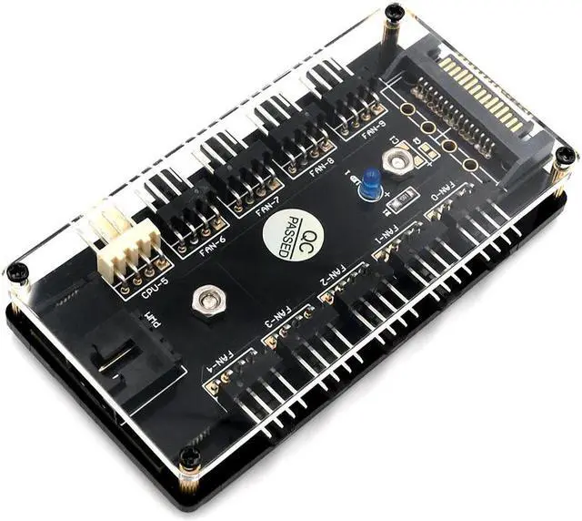 PWM Fan Hub CPU Cooling 10 Way 12V LED 3 / 4Pin Fan Splitter Cable Fan Controller PC with PMMA Case Magnetic Standoff SATA Power