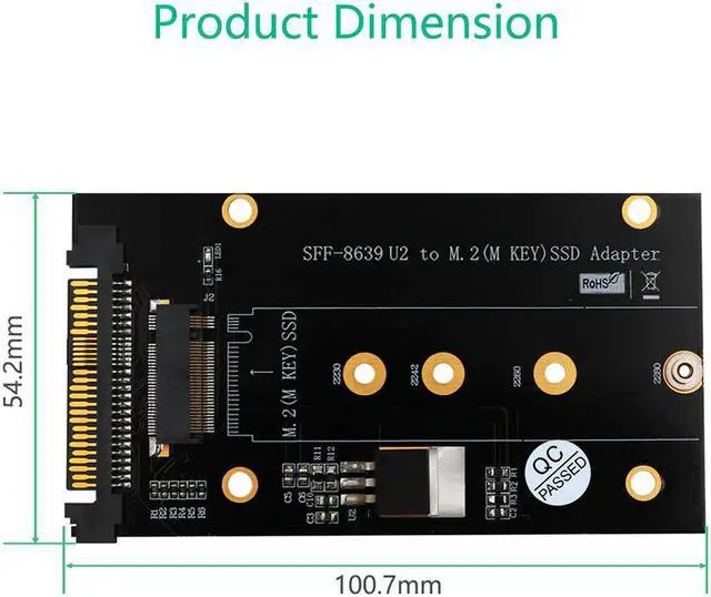 2. This adapter is used for converting M.2 Key M nvme SSD to SFF-8639 U.2 interface.