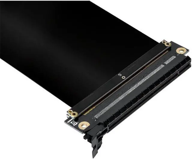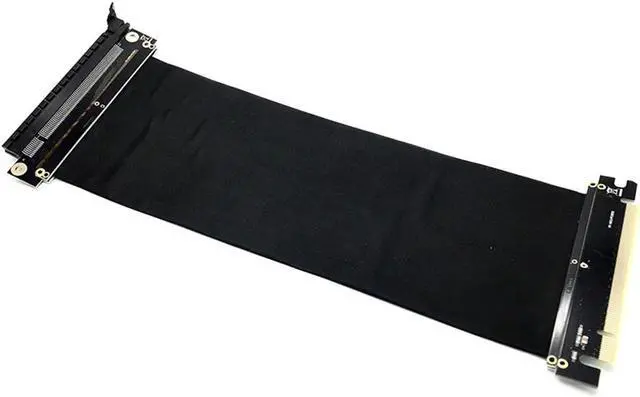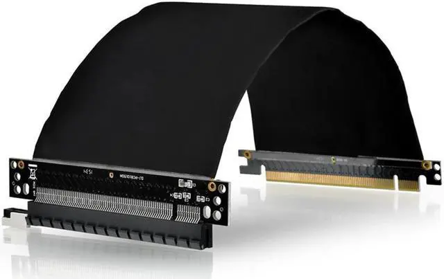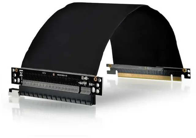 This PCI Express riser/extender can be used to mount a PCI Express x16 card in a wide variety of situations. It is especially suitable for custom enclosures and low-profile rack-mount chassis. This riser card faces away from the mainboard; however, since it is flexible, it can be redirected. Please ensure that PCI cards are securely mounted in an EMI safe location, and that no shorts have occurred due to poor PCI card placement.