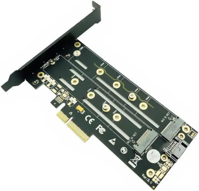 • M.2 NVMe SSD NGFF to PCIE X4 Adapter M Key B Key Dual Interface Card Heatsink Low Profile Bracket PCI Express 3.0 2230-22110 SSD