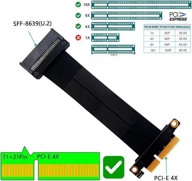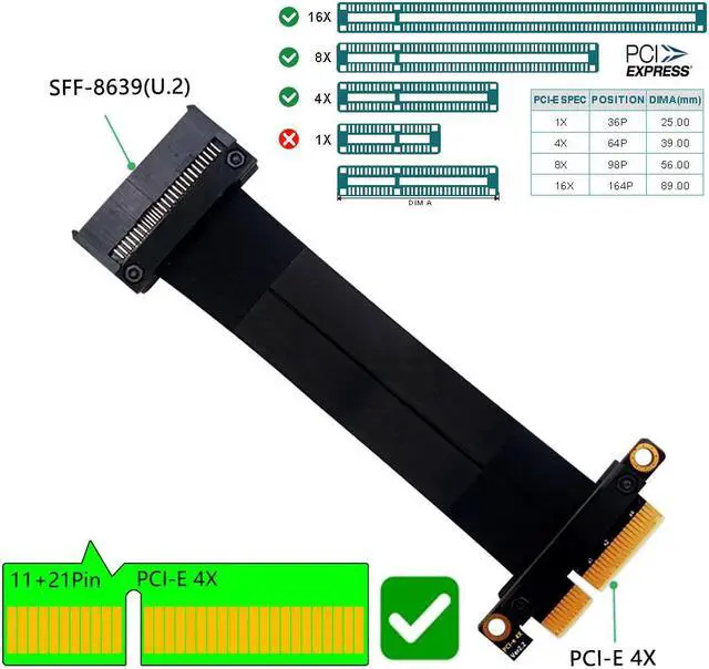 Riser Cable SFF-8639 U.2 to PCI-E 3.0 4X Flexible Cable Riser Card Ribbon Extender Cable Extension Port Adapter for U.2 NVME SSD