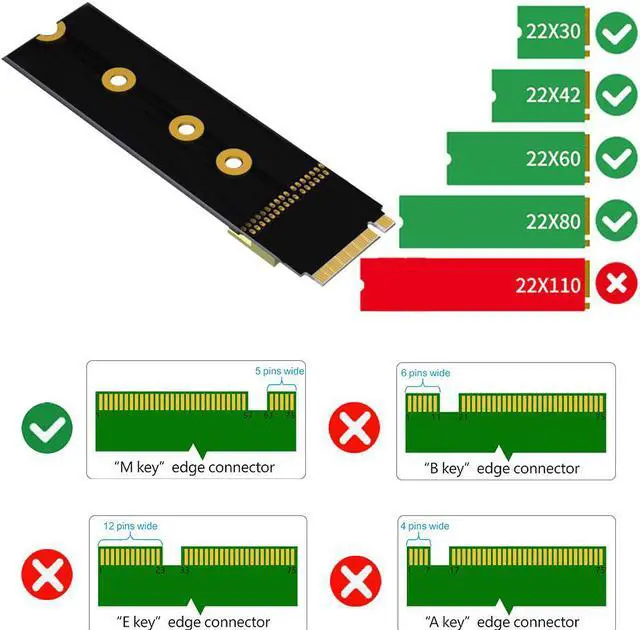2. Supports only 2230/2242/2260/2280 type M.2 key M interface.