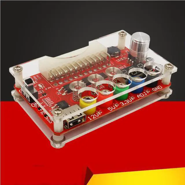 24 Pins ATX Power Supply Breakout Board and Acrylic Case Kit Module Adapter Power Connector Support 3.3V/5V/12V 1.8V-10.8V (ADJ)