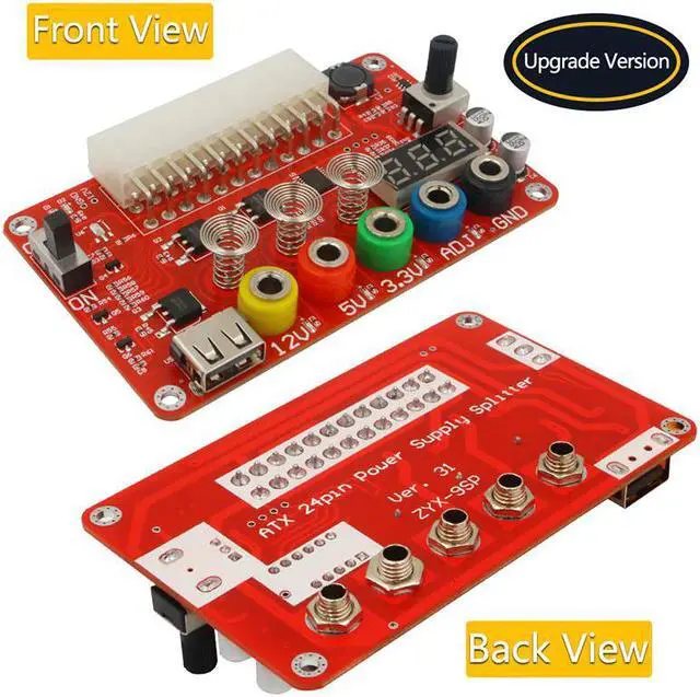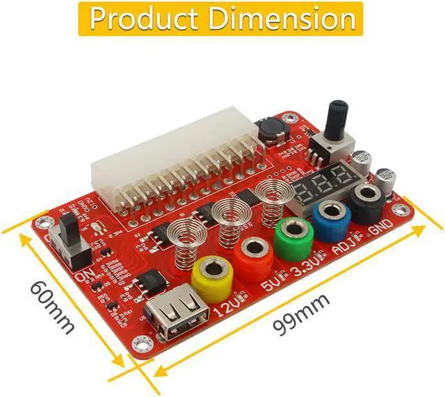 1. ATX power supply breakout board, with ADJ adjustable voltage knob, supports 3.3V, 5V, 12V and 1.8V-10.8V (ADJ) output voltage.