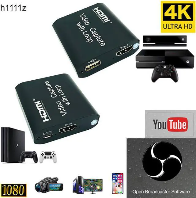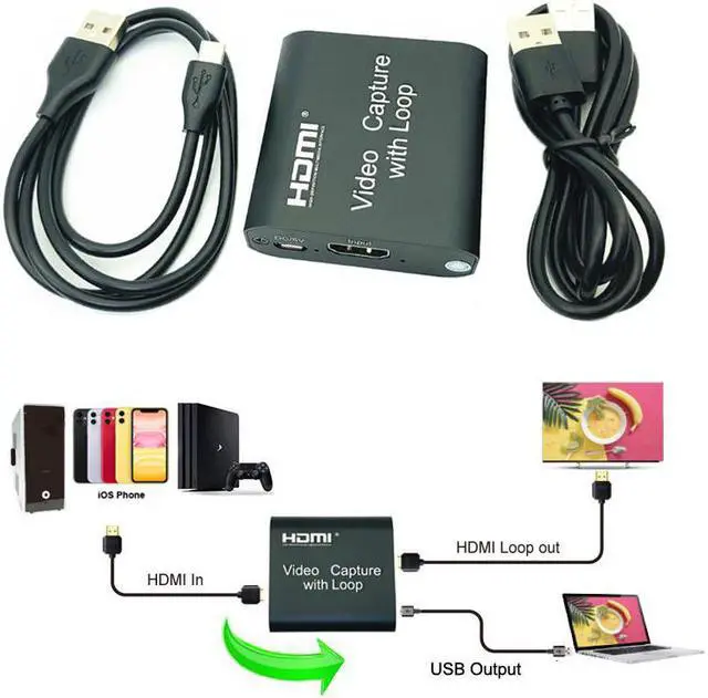 Capture Card 1080P 4K HDMI Video Capture Device USB 2.0 HDMI Capture Card Dongle Game Recorder Live Streaming Broadcast Loop Out