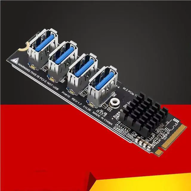 M.2 PCIE Riser Card for Mining 4-port MKEY PCI-E X1 Adapter Module 1 to 4 Expansion Board for BTC Miner Desktp PC Windows XP