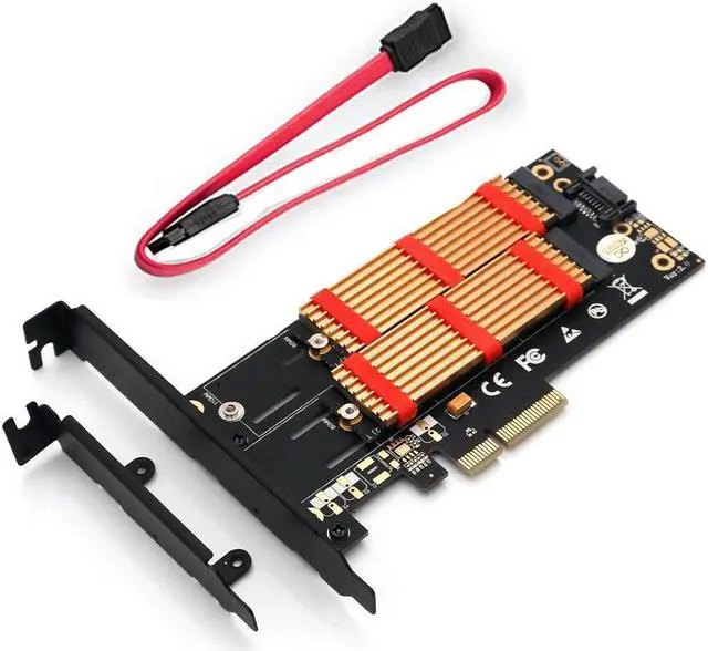 M.2 SSD NVMe M Key + SATA B Key M.2 NGFF PCIE to M2 Adapter Riser PCI Express 3.0 Controller with Low Profile Bracket Heatsink