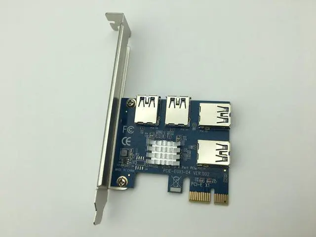 1 x PCIe to 4-port USB3.0 Riser Card for Mining