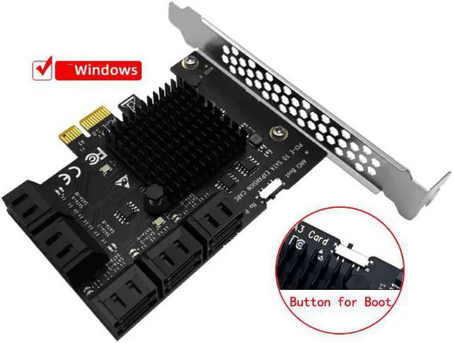 Chia Mining Riser 10 Port SATA 3.0 to PCIe Expansion Card PCI Express SATA Adapter SATA3 6G Converter with Heat Sink for Windows