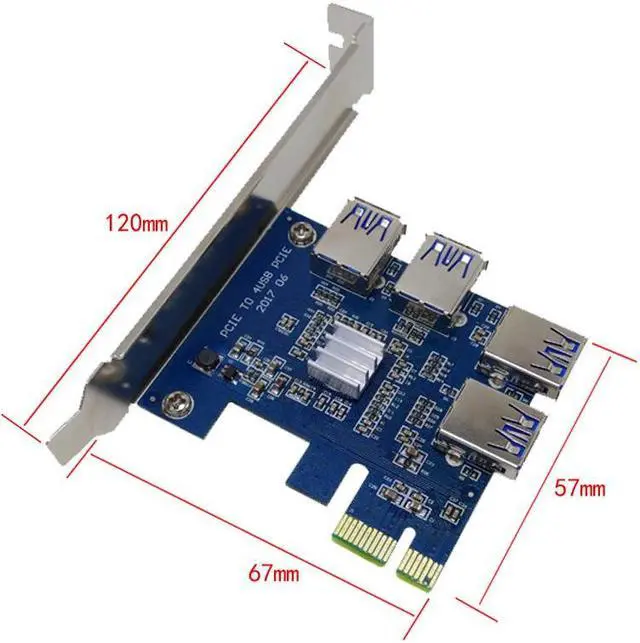1 to 4 PCI-E to PCIe Slot USB3.0 4 Port PCI Express 1x Riser Card Adapter Converter Card USB 3.0 Connector for BTC Miner Mining