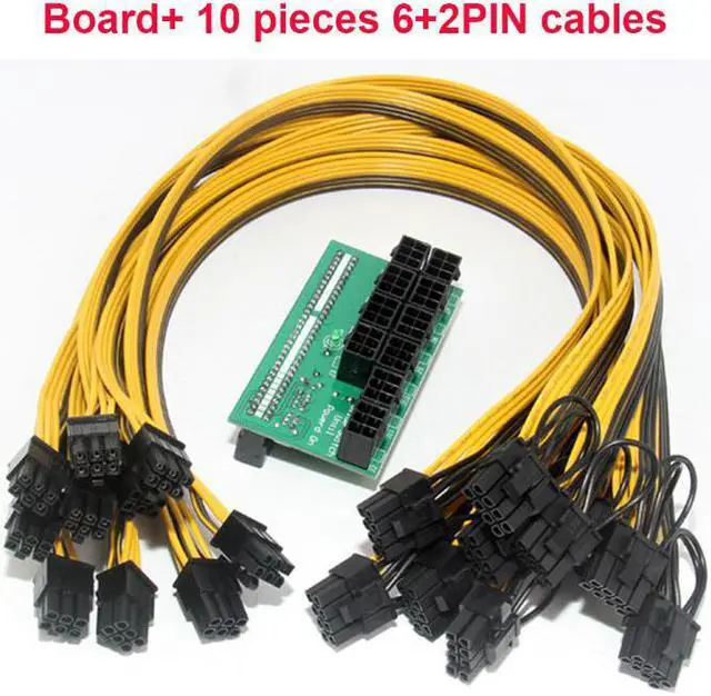 QINDIAN 10*6Pin Port Breakout Adapter Board Power Module With 50CM 18AWG 6Pin Male to 6+2Pin Male Cable Mining Power Supply Kit