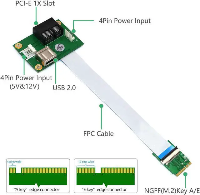 PCIE Riser NGFF M.2 Key A/E to PCI-E Express X1+USB Adapter Riser Card with FPC Cable 4Pin Power Supply Cable PCIE Convert Cable