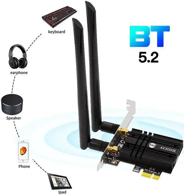 AX3000E Tri Band 3000Mbps WiFi6 PCIe Wifi Adapter Bluetooth5.2 Wireless 2.4G/5G/6Ghz 802.11ac/AX 6G Wi-Fi 6E Card MT7921K For PC