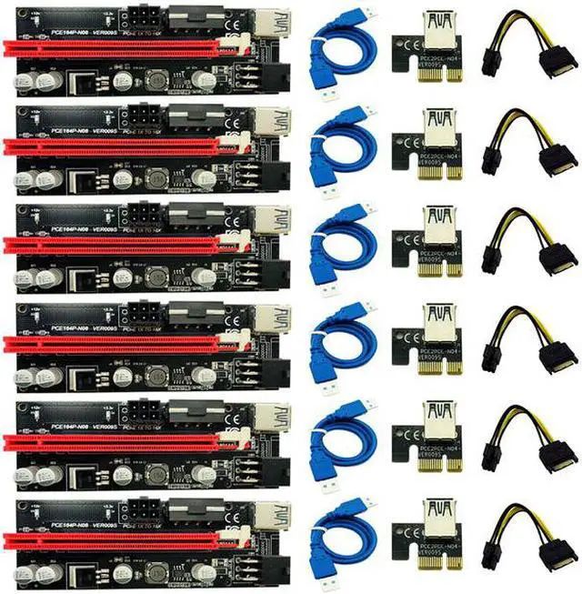 6pcs est VER009 USB 3.0 PCI-E Riser VER 009S Express 1X 4x 8x 16x Extender Riser Adapter Card SATA 15pin to 6 pin Power Cable