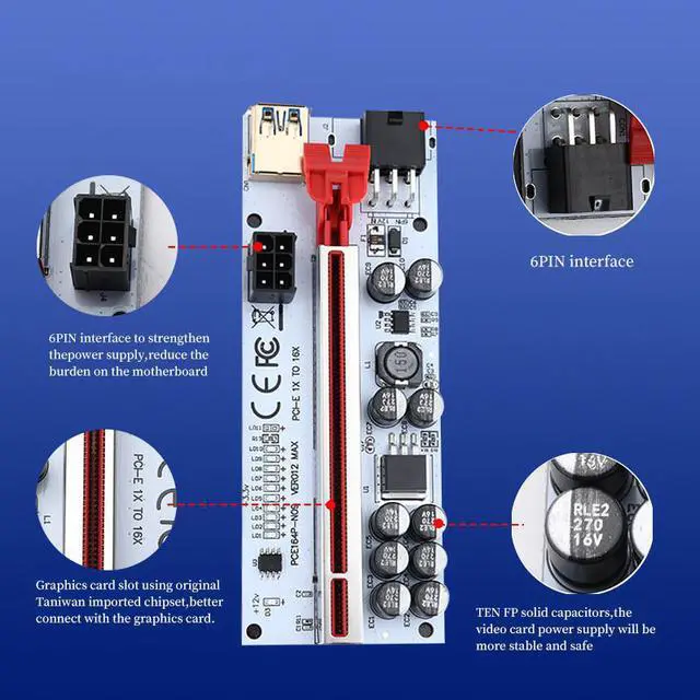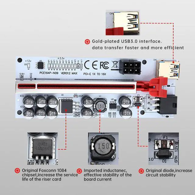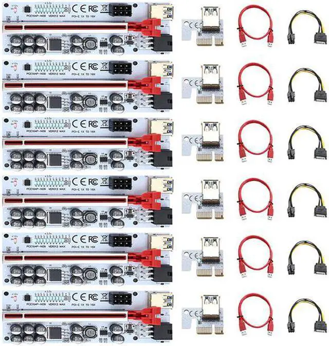 6PCS PCIE Riser VER012 MAX 012MAX Riser PCI Express X16 Extender USB3.0 GPU Riser for Video Card w/ LED for Bitcoin Miner Mining