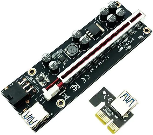 Version 009S PLUS riser kits are the est and top of the line solution for setting up GPU mining rigs. One Gold Graphic card 6PIN interface, which provides Graphic card independent power and reduces motherboard burden when using more Graphic cards. 8 Solid Capacitors, 60cm USB 3.0 cable, Suitable for all Window systems, LINUX and MAC.