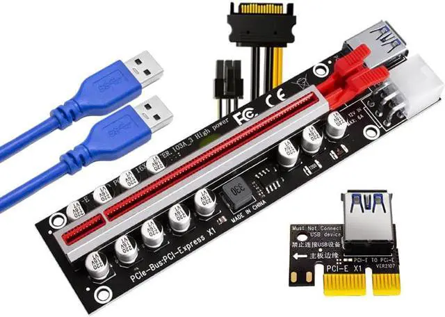 PCIE Riser for Video Card VER103A-3 Riser PCI Express X16 High Power 12 Capacitor SATA to 6Pin Cable USB3.0 Cable for BTC Mining