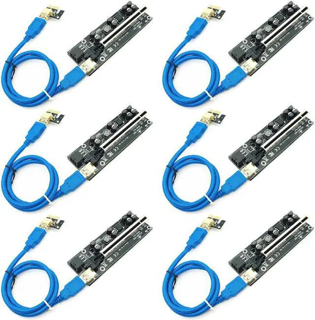 6pcs est 009S PLUS USB 3.0 PCI-E Riser VER009 Express 1X 4x 8x 16x Extender pcie Riser Adapter Card SATA 15pin to 6 pin Power