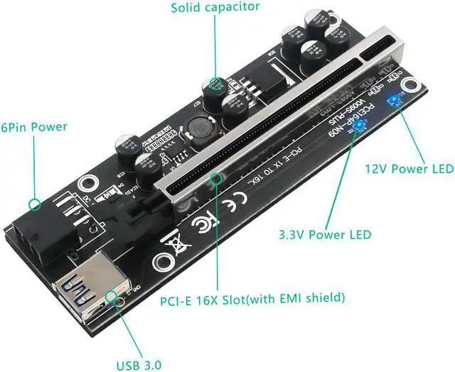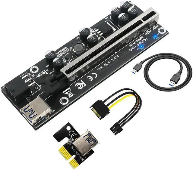 PCIE Riser 009S Plus USB3.0 Riser for Video Card Riser PCI Express x16 Extender Adapter Card SATA 15pin to 6pin Power for Mining