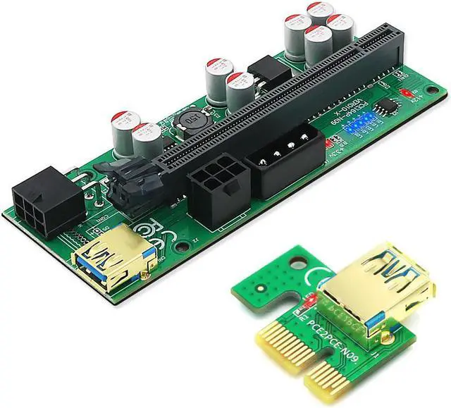 10. Power via Molex 4pin or two different 6-PIN inputs onboard the riser.