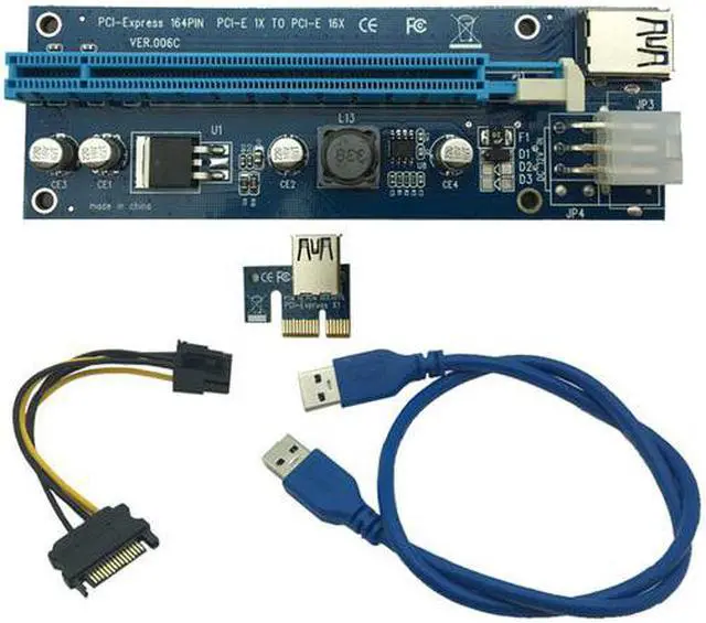 6Pcs 006C PCIe PCI-E PCI Express Riser Card 1x to 16x USB 3.0 Data Cable Adapter SATA to 4Pin IDE Molex 6 pin for Bitcoin Mining