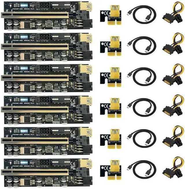 6PCS PCIE Riser for Video Card USB 3.0 Extension Cable Adapter Cabo Riser PCI Express X16 VER009C Riser for Bitcoin Miner Mining