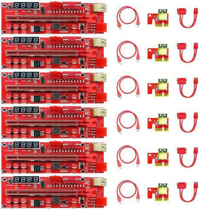 6PCS PCIE Riser V014 Pro Riser for Video Card Riser PCI Express X16 X1 SATA To 6Pin Power USB 3.0 Cable For Bitcoin Miner Mining