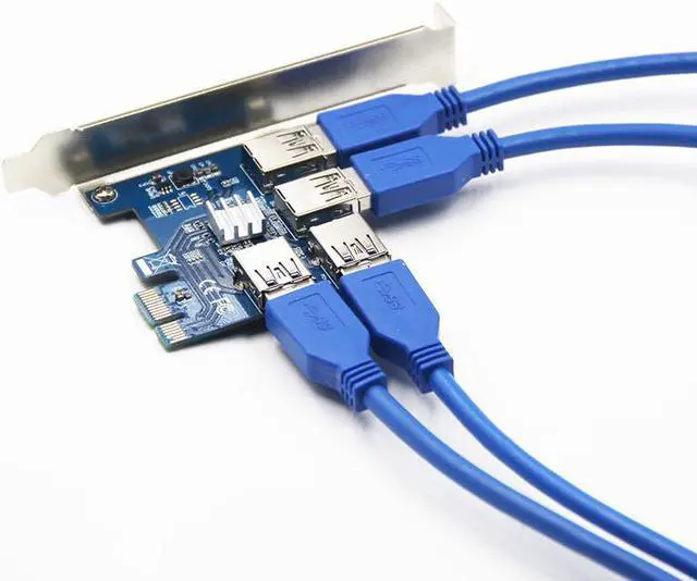 1 to 4 PCIe PCI-E Riser Card PCI Express 1x to 16x USB 3.0 Data Cable SATA to 6Pin Power Supply for BTC Miner Machine Mining