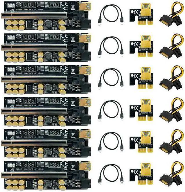 6PCS PCIE Riser VER016 V016 Riser For Video Card Riser PCI Express X16 Extender USB 3.0 Cable Voltage Temperature For BTC Mining