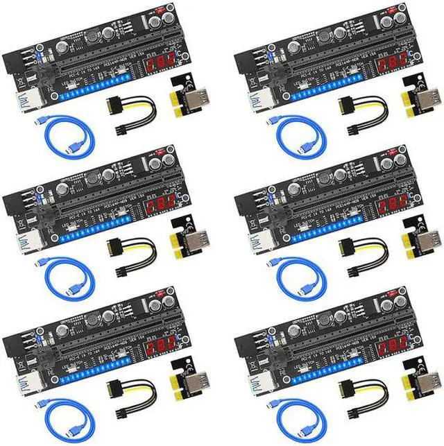 6PCS PCIE Riser for Video Card for Mining VER15X Riser PCI Express X16 Temperature LED for Graphic Card GPU Bitcoin Miner Mining