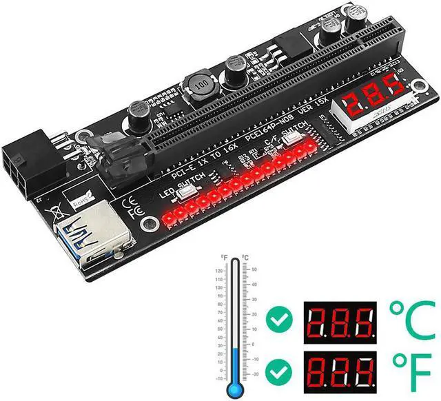 1. This version adds the temperature sensor ,digital temperature display and 3528 colorful flash LED, which can Intuitively display the ambient temperature around the graphics card in real time.