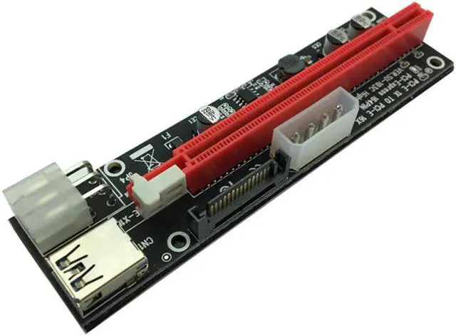 50pcs PCI-E PCI E Express 1X to 16X graphics Riser Extender Card SATA 15 Pin 6 Pin 4 PIN 3 Power Supply With LED light display