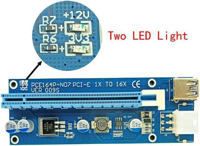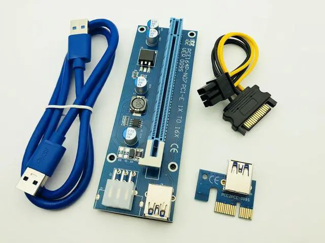 50PCS VER009S PCI-E PCI Express Molex 6Pin to SATA 1X 16X Riser Card Extender Adapter USB 3.0 Cable LED for Bitcoin Miner Mining