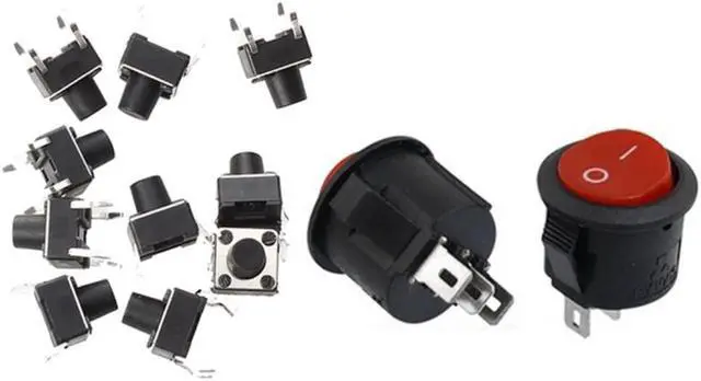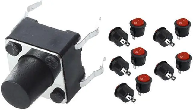 10Pcs 4 Pins Tactile Round Push Button Switch Momentary Tact & 10Pcs SPDT Black Red Button On/On Round Rocker Switch AC 6A/125V 3A/250V:Material: Plastic, Metal, Electric Parts & Plastic, Metal ,Color: Black, Silver & Black, Red