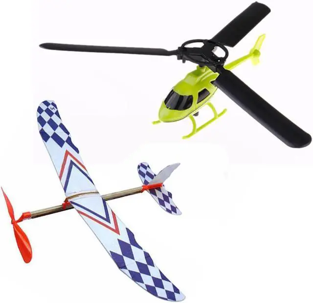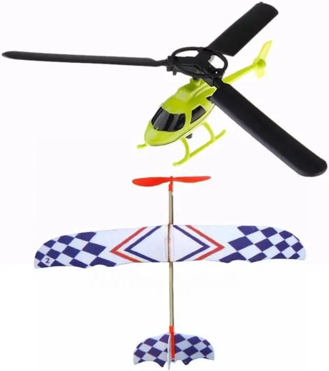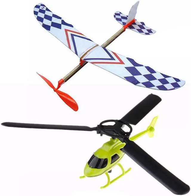 Aviation Model Handle Pull The Plane Outdoor Toys For Children Play Helicopter & Elastic Rubber Band Powered DIY Foam Plane Mode