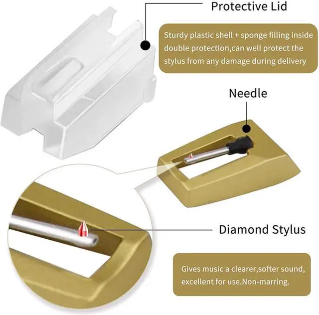 [Super Quality Replacement Needles] Our turntable cartridge and stylus needles have high output and excellent durability.Diamond stylus with 4-6 grams needle forces which give a clearer, smoother stereo sound to the music and will not harm your cherished albums.