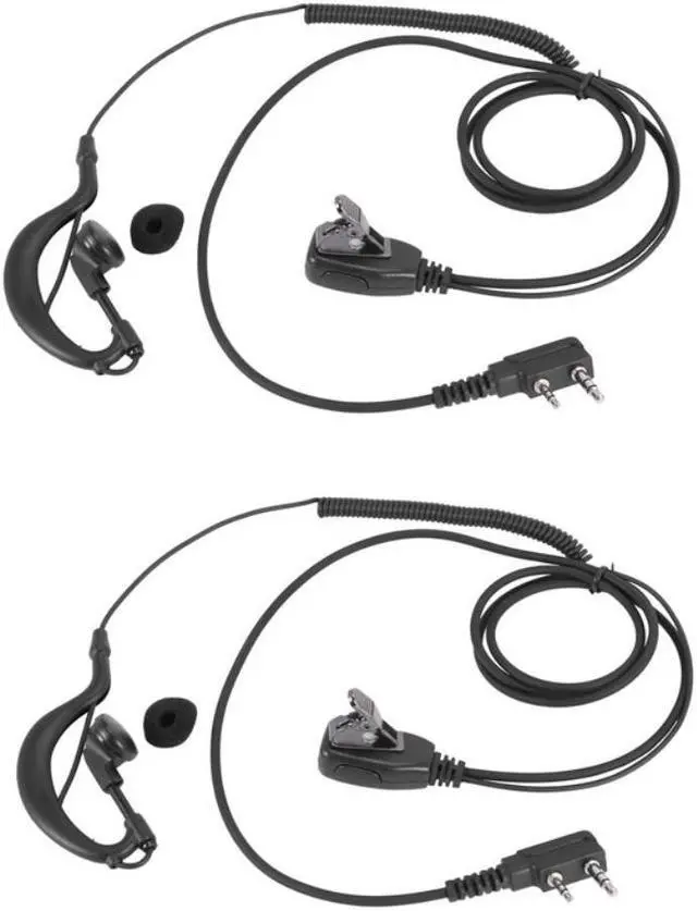 2X 2Pin G Shape Earpiece PTT MIC Ear Hook Headset For Kenwood Puxing Wouxun Baofeng Radio
