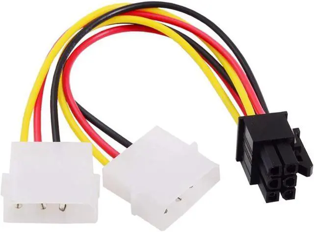 The 6-pin adapter cable converts two 4 pin molex connectors to one 6 pin