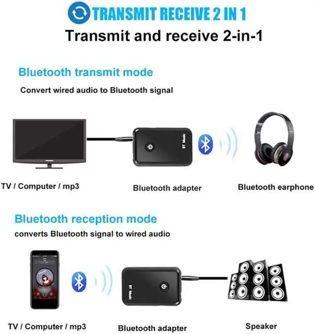 2 In 1 Bluetooth V4.2 Audio Transmitter Receiver Audio Music Adapter